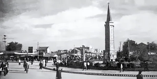 这个尖顶的纪念塔是二七广场最早的模样,塔身瘦高,四周还是平房和小摊,电车从边上叮铃叮铃地过,广场中央的花坛不大,人倒不少,等人、拍照、歇脚都在这儿,后来塔换了样,广场也越修越敞亮.