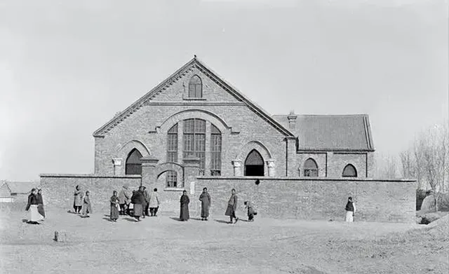 这个红砖灰瓦的教堂窗子高高的,拱门上边镶着石线,冬天的风吹过院墙发出呜呜声,转个弯就是人民剧院的大门,墙上画着巨幅宣传画,台口两侧的浮雕到现在想起来还带着光.