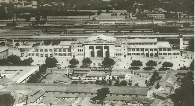 这个建筑叫郑州火车站,正立面有三拱门,最早的站前空场子特别大,等到第二张时月台铁轨密成一片,第三张池子和花坛都摆上了,字牌“郑州站”红得扎眼,妈妈说“郑州就是火车拉来的城市”,这句话一点不夸张.