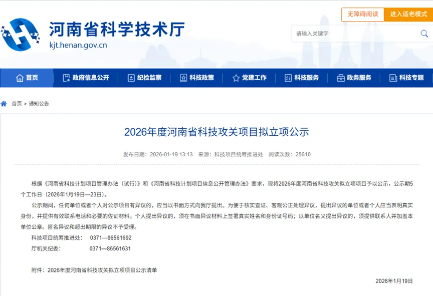 喜报!我院项目入选2026年度河南省科技攻关项目