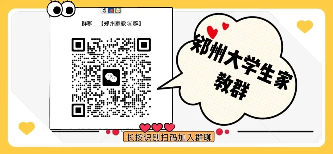 家长请家教请加微信:187 9089 9362(备注:请家教)大学生做家教老师请加微信:bukels121(备注:学校+擅长科目)欢迎各位优秀大学生加入郑州家教兼职群(仅允许老师进群,家长勿进群)↓↓↓