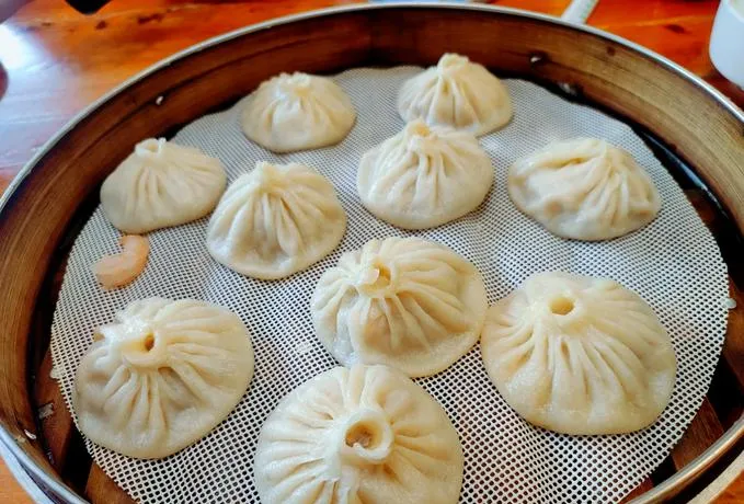 早上,得先吃笼灌汤包。在鼓楼夜市那家"黄家老铺",皮薄汤鲜,轻轻一咬,汁水流出。包子不大,刚够暖胃。
