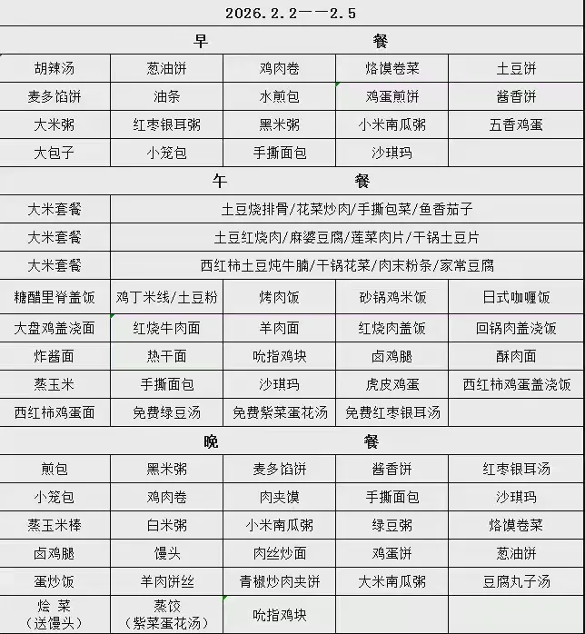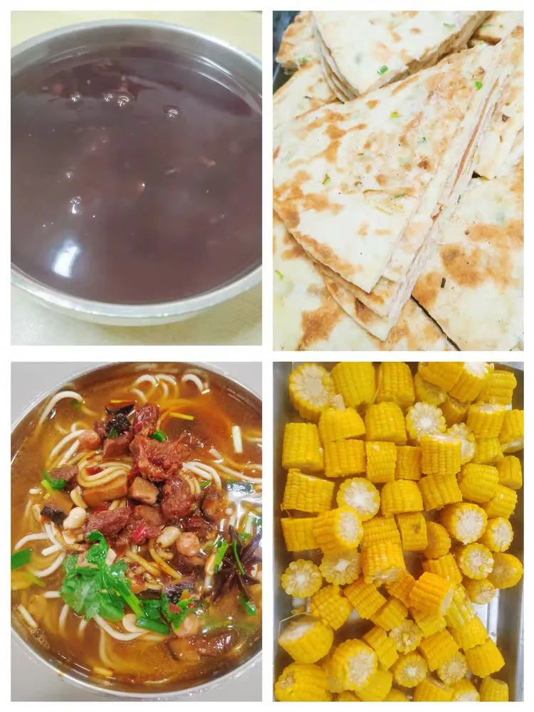 餐厅中午有免费绿豆水或咸汤,学生吃完主食(面条、米饭等)后,可以免费加餐。