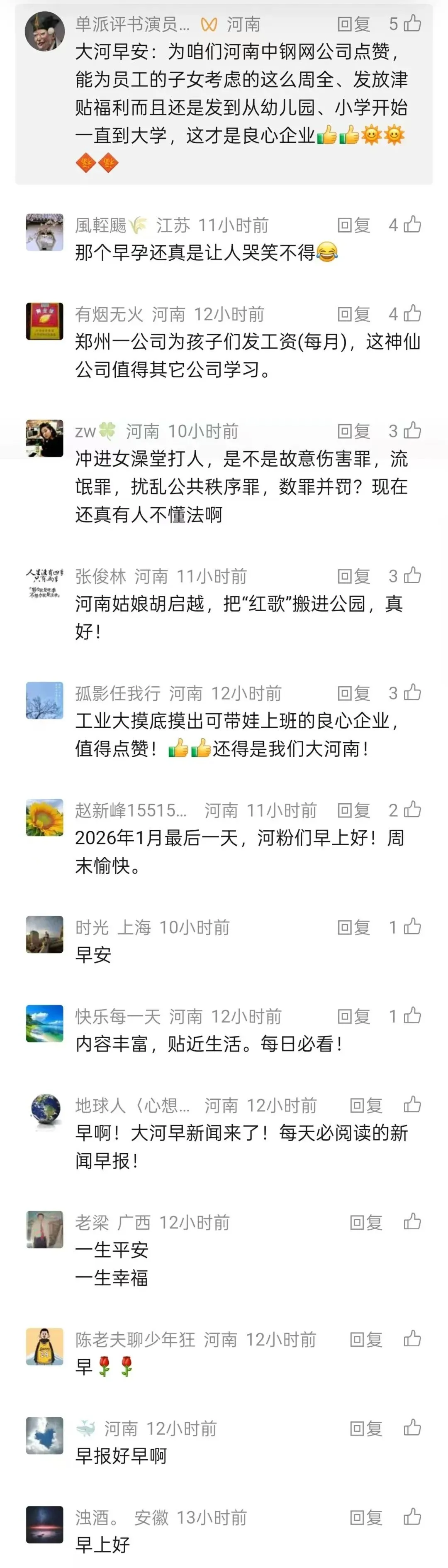 2026年1月包括郑州、鹤壁、濮阳、南阳、信阳等河南多地发布人事任免通知。👉详情一起来看(河南发布综合)⊙金价暴涨后迎史诗级暴跌!记者实探郑州市场,黄金回收柜台前挤满顾客1月30日晚至31日凌晨,黄金遭遇40年来最大单日下跌,白银也创出历史最大盘中跌幅。此次国际金价的“跳水”,迅速传导至国内零售市场。1月31日,国内金饰价格纷纷下跌,部分品牌金饰克价较前一日跌超100元,最低来到了1498元/克。记者线下走访了郑州金饰市场,多家商铺前人头攒动,柜台和收银台挤满顾客。来回收的顾客也明显增多。👉详情(河南发布综合)▼