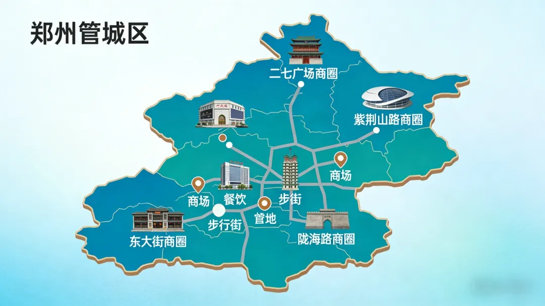 管城回族区是郑州商都文化发源地、南部新城商业拓展核心区(郑州市 2026 商业中心规划),定位为 “商代遗址文商旅融合 + 航海东路成熟商业 + 南部新城刚需配套” 三位一体的综合性商业区域。依托 3600 年商都历史文化资源、航海东路传统商圈,叠加南部新城(南龙湖片区)人口导入红利,正从 “传统批发 + 社区商业” 向 “文商旅体验 + 品质消费 + 刚需配套” 转型,是郑州南部商业发展的 “主力军”。