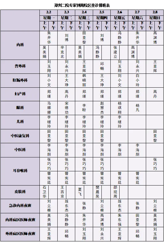 郑州二院门诊服务时间: