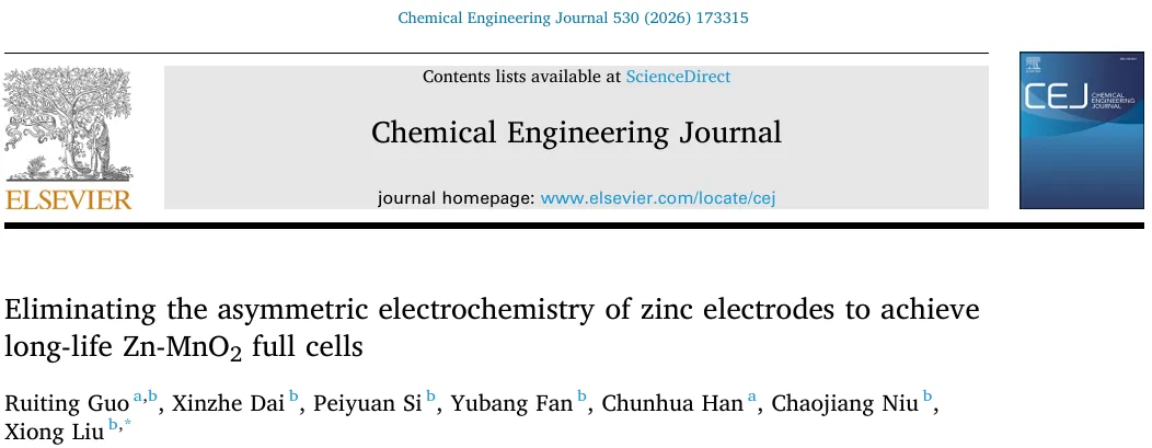 消除锌电极的非对称电化学,实现长寿命Zn-MnO2全电池