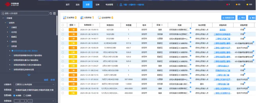 安阳联通讯(网络中控/监控网格:李瑞)安阳联通监控网格全面复盘2025年S级故障,其中两起S2均为动力电源原因,结合本月其它地市发生的S级故障,根据集团定义的B接口告警等级,只盯一级告警是远远不够的。监控网格全面梳理天眼平台告警过滤规则,以重要的设备类型为依据重新定义告警过滤规则。