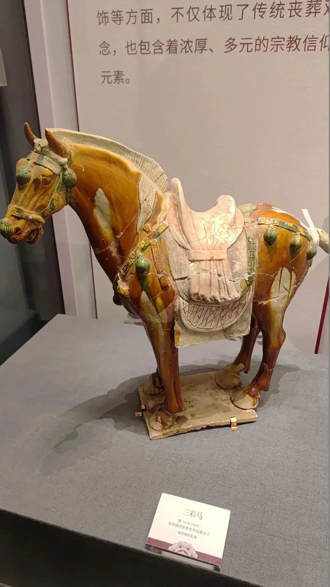 在唐代,洛阳主要称之为东都,在武则天时期(公元六八四年后)改称神都,唐玄宗时期(公元七四二年后)改称东京,是唐代的陪都或实际首都。是当时的政治和文化中心,城市地位和都城长安不相上下。一九零五-一九零九年修陇海铁路时,在洛阳北邙山出土大量唐三彩,引起学者关注。此次安庆博物馆与洛阳博物馆、龙门石窟研究院、偃师博物馆在安庆合办的帝国东都唐代洛阳文物展。共计展出来自洛阳博物馆、龙门石窟研究院、偃师博物馆一百二十余(套)洛阳唐代文物,涵盖陶瓷器、青铜器、金银器、石刻墓志等多个品类,主要展品为巩县窑唐三彩及各色釉陶瓷器,展示唐代洛阳的多元文化面貌,回溯唐代洛阳的经济繁荣和文化交融的盛况。