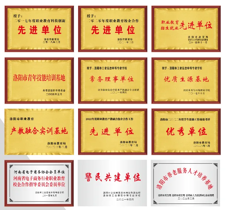 洛阳市工业信息中等专业学校是经河南省教育厅批准、洛阳市教育局直属管理的全日制普通中专。学校荣膺“河南省优秀学校”“洛阳市招生就业先进单位”“洛阳市职教科技创新先进单位”“洛阳市校企合作先进单位”“洛阳市产教融合实训基地”“洛阳市高水平专业群建设基地”“洛阳市养老服务人才培养基地”“中医传承培训基地”,具有“国家职业技能鉴定”资质。我校是河南省电子商务协会、河南省康复治疗技术产教融合专业联盟常务理事单位,洛阳市公共健康协会、洛阳市职业技术协会副会长单位。学校坐落在洛阳市洛龙区军民路15号,与中国国花园、老洛阳师院、113旅为邻,紧邻洛阳桥南、龙门大道,交通便利,环境优雅,人文气息及学习氛围浓厚。学校占地210亩,是标准的花园式单位。学校设计算机工程系、新能源与汽车工程系、社会服务系、艺术与教育系、机电工程系、宏志升学部,开设计算机应用、电子商务、音乐表演、城市轨道交通运营服务、机电技术应用、老年人服务与管理、汽车运用与维修、中餐烹饪、制冷和空调设备运行与维修等30多个热门专业。重点建设机电技术应用高水平专业集群、老年人服务与管理高水平专业集群、计算机应用高水平专业集群、中餐烹饪特色专业集群、音乐艺术表演(幼教)特色专业集群、汽车运用与维修特色专业集群、形象设计特色专业集群、城市轨道交通运营管理精品专业,即“三高四特一精品”。