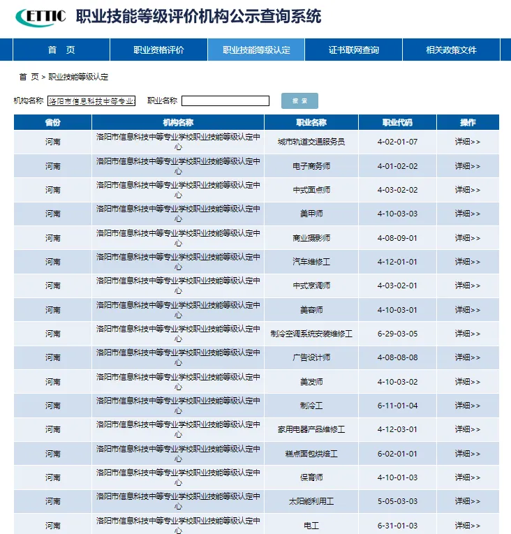 经省教育厅、人社厅备案审批,我校设立技能等级认定中心,落实省委省政府部署的高质量推进“人人持证、技能河南”建设工作任务,充分发挥院校师资和教学资源优势,加快培养数以千计的知识型、技能型、创新型劳动大军。我校首批职业技能等级认证涵盖19个职业、33个工种,涉及我校18个相关专业。我校认定中心可直接面向在校学生认定并发放国家承认的中高级资格证书,网上可查。近年来,河南多家大学在单招考试中职业技能水平评价办法中就明确指出,不同级别的职业资格证书可以折算不同的分数为升学助力,提高录取率。