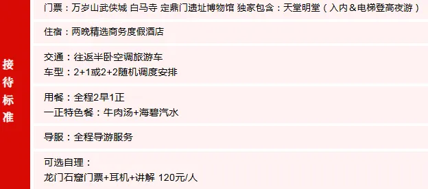 推荐参观:龙门石窟门票+耳机+讲解套票 120元/人 请您自理。