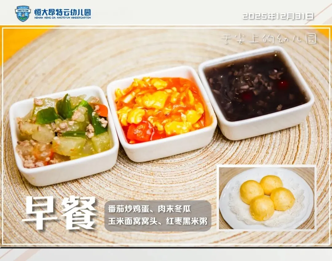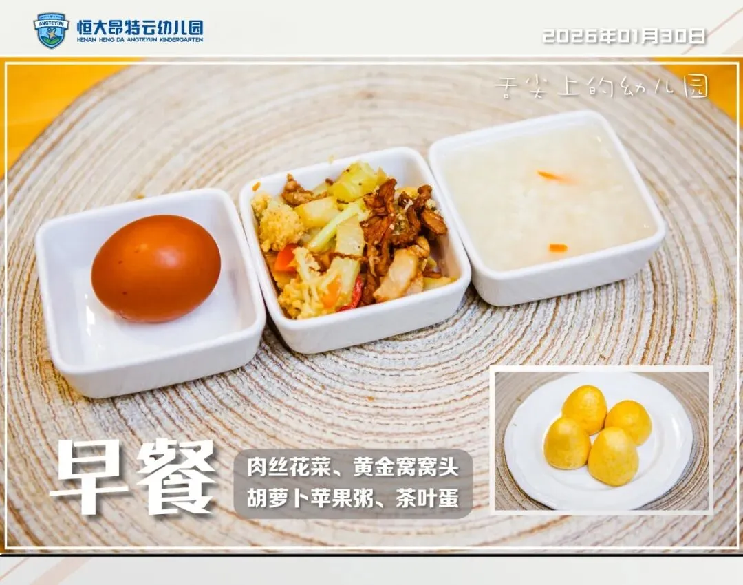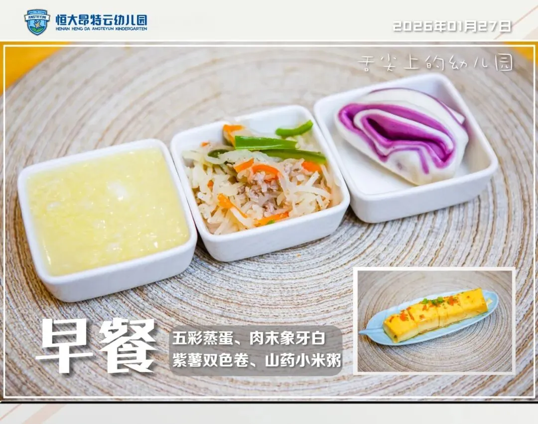 能量早餐:滑水蒸蛋、土豆烧肉片、枣花馒头、山药小米粥