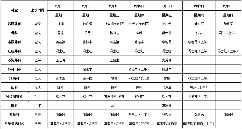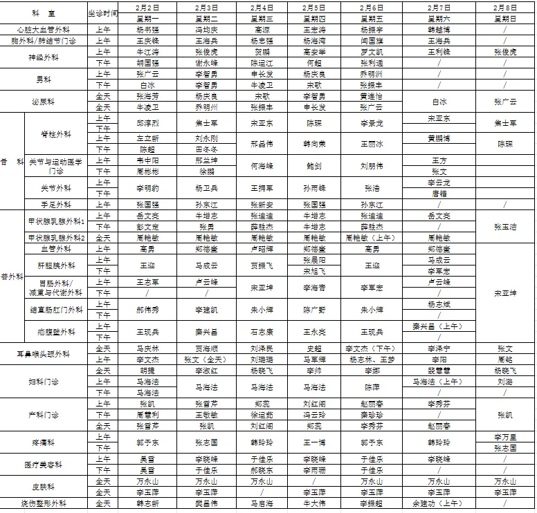 【门诊就医早知道】2月2日至2月8日安阳市人民医院门诊坐诊表