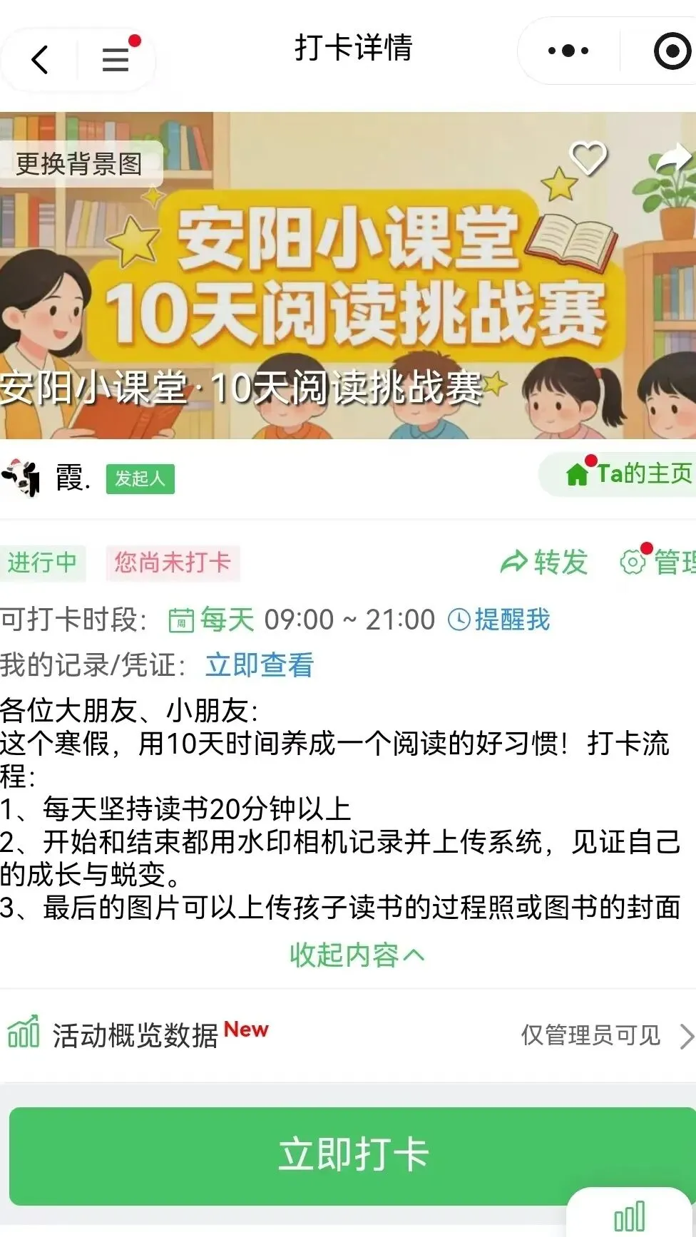 这不仅仅是一次打卡,更是一次关于爱与坚持的承诺。让我们以书为媒,以爱为伴,共同见证孩子的成长与蜕变!