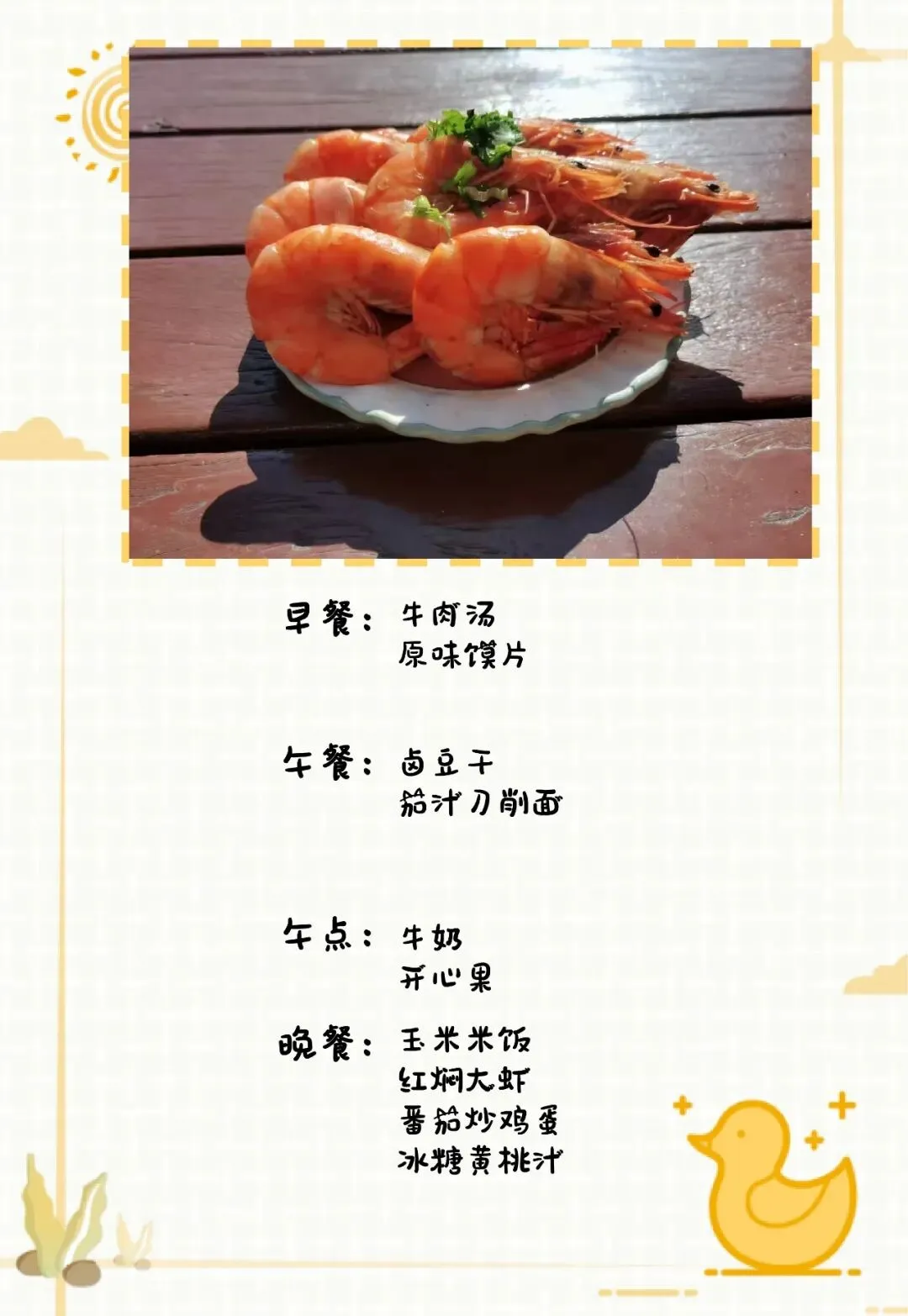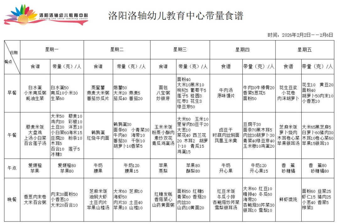 南山幼儿园食谱周报