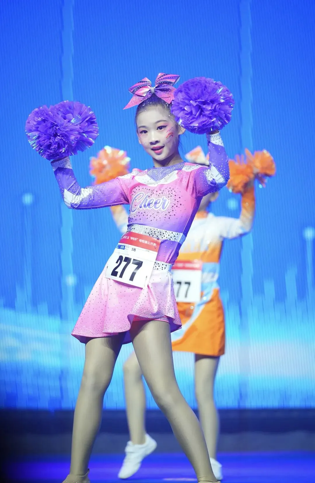 赛场上,运动员们身着靓丽的赛服,伴随着动感的音乐,用充满力量的操化、灵动协调的步伐和自信灿烂的笑容,将平日训练的成果淋漓尽致地展现出来,赢得了现场观众的阵阵掌声与喝彩,深刻诠释了啦啦操“青春、时尚、活力”的核心精神。