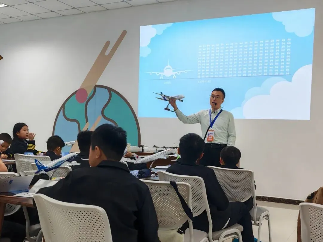 研 学 导 师 将 通 过 图 片 、 教 材 、 飞 机 模 型 教 具 等 , 通 过 讲授、互动、问答等方式,带领同学们全面认识世界民用航空发展的历史,尤其是人类在航空领域的探索和航空业对人类文明的深远影响。