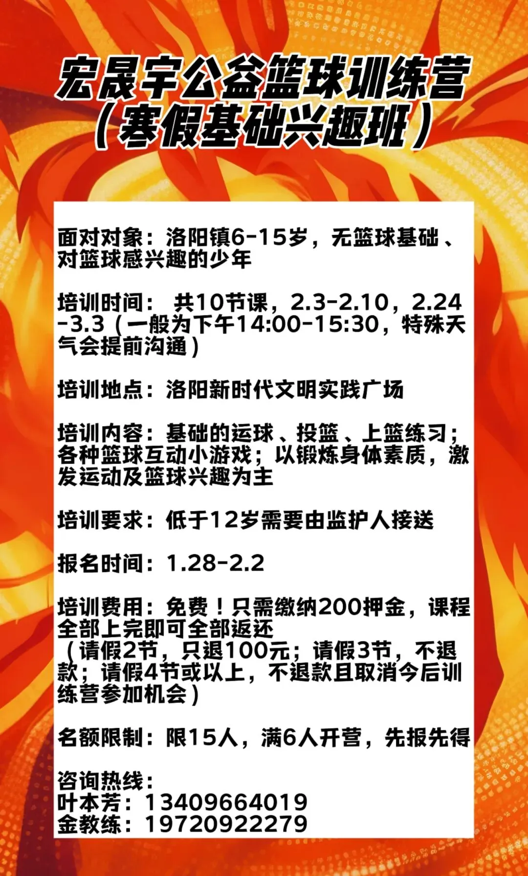 响应大家的呼声,洛阳篮球训练营在2023年应运而生。去年暑假,我们见证了第二批小球员从生疏到熟练,从害羞到自信。2026年,我们再度归来!不仅持续开展训练,更组织小朋友观看真实比赛、参与友谊赛,让他们在真正的球场上挥洒汗水、感受团队的力量与运动的快乐!