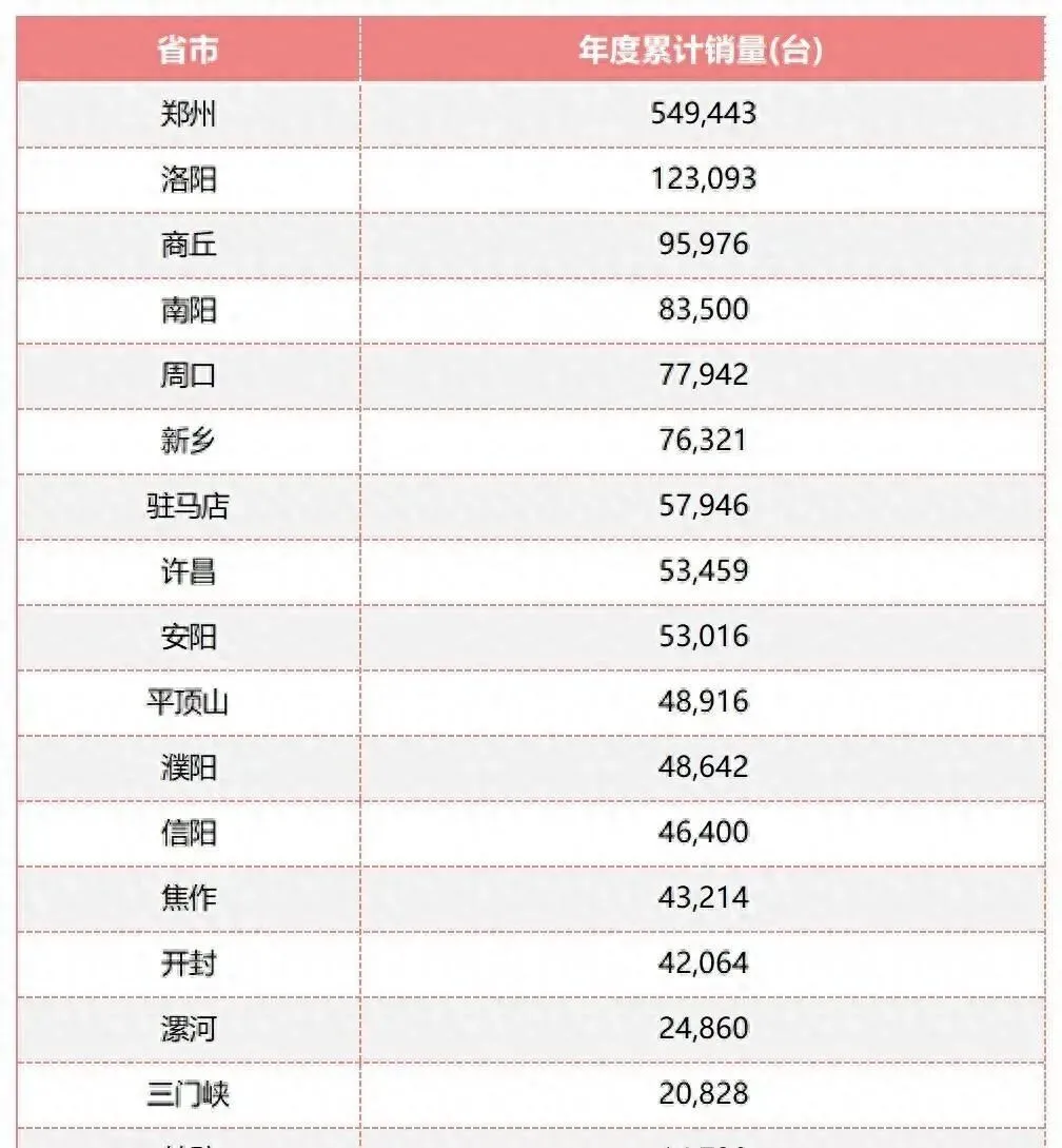 放眼河南各地,洛阳12.31万辆排第二,南阳8.35万辆第四,周口7.79万辆,新乡7.63万辆,后面驻马店许昌安阳平顶山濮阳,都在5万辆左右,一条线看过去,谁也不掉队,挺均衡。