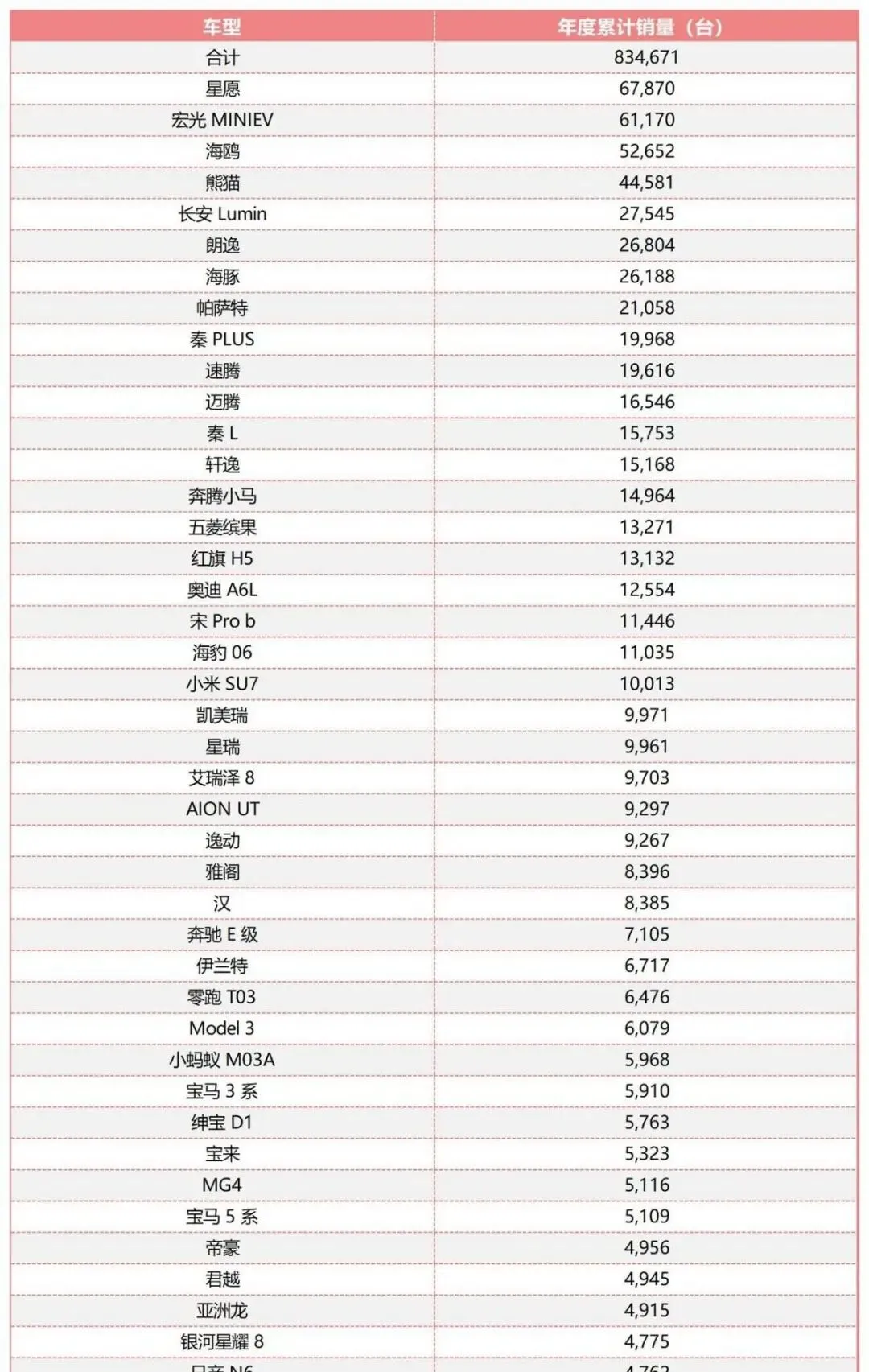 车型层面,轿车先看,吉利星愿6.79万辆,拿下年度冠军,A级纯电这个档,造型精致,配置给到,价格亲民,年轻人就吃这套,海鸥5.27万辆,熊猫4.46万辆,小型电动车热度不低,代步要啥,省钱省心就够了?