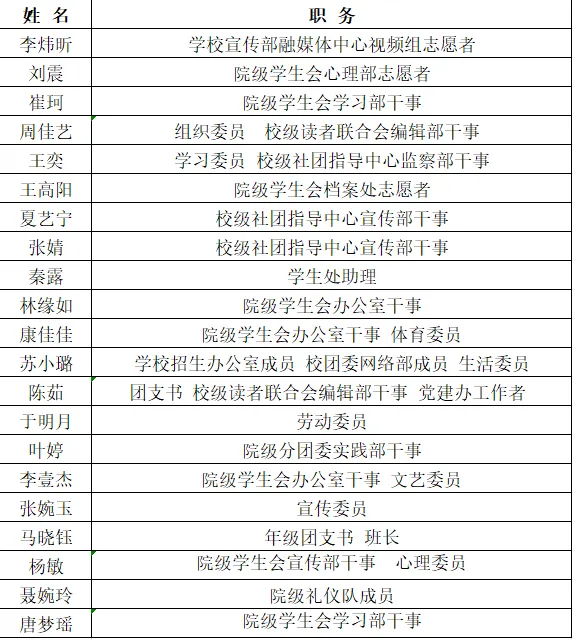 团支部成员共有23名学生在校级或院级学生组织担任学生干部,工作踏实严谨、作风端正优良,用实际行动为同学们服务。