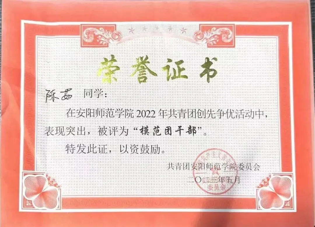 支部以寝室为单位成立学习小组,由寝室长进行督促,保证每位成员都能保持端正的学习态度,支部成员共同进步。截止目前,普通话测试全员达二乙及以上标准,获得国家励志奖学金4人,同时支部成员也积极参加市级、校级、院级各类比赛,总计取得60余项佳绩。其中团支部书记陈茹参加全国大学生英语作文竞赛荣获三等奖。