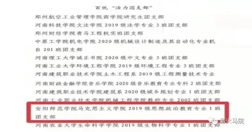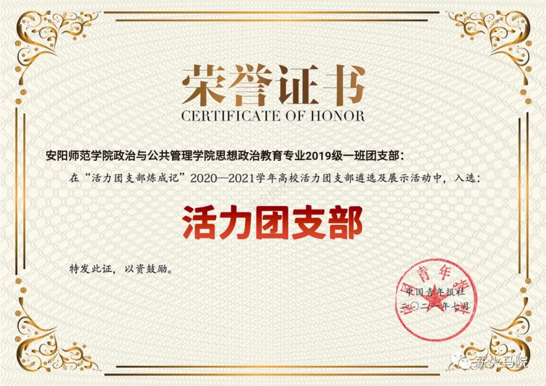 马克思主义学院2019级思想政治教育一班团支部积极参与学校、学院组织的各项活动。在活动中,进一步强化了青年团员的使命担当,提高了支部成员的政治意识和自身能力。通过支部成员的不懈努力,在不断改正和进步的过程中,先后荣获全国高校“活力团支部”、河南省百优“活力团支部”、校级“十佳团支部”等荣誉称号。