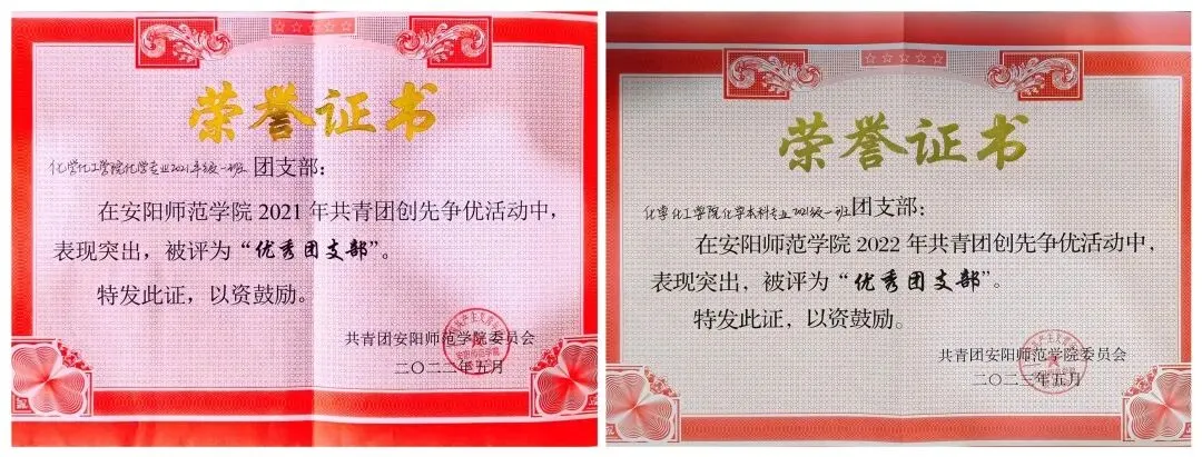 在支部成员的共同努力下,支部先后获得“河南省文明班级”“河南省先进班集体”,安阳师范学院“优秀班集体”“十佳团支部”,并连续两年荣获安阳师范学院“优秀团支部”等荣誉称号。
