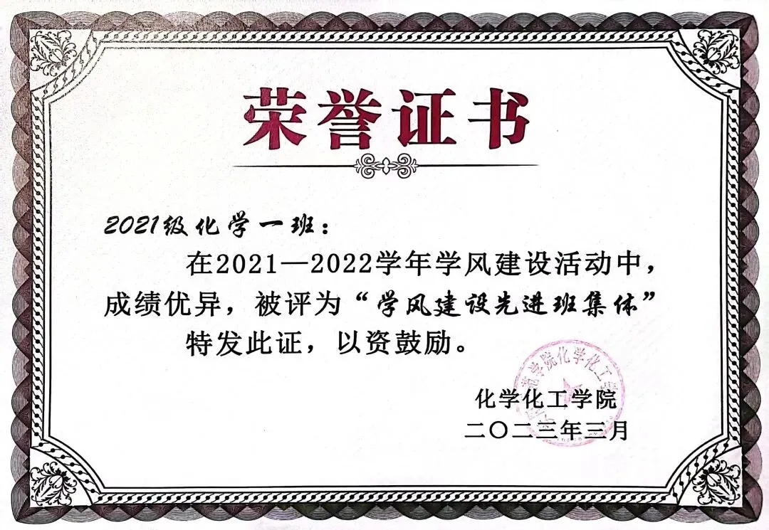 ▲ 2021级化学本科专业1班团支部 供