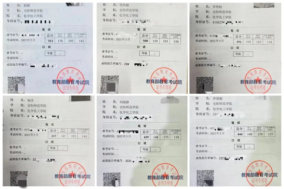 ▲ 图为 部分CET成绩报告单