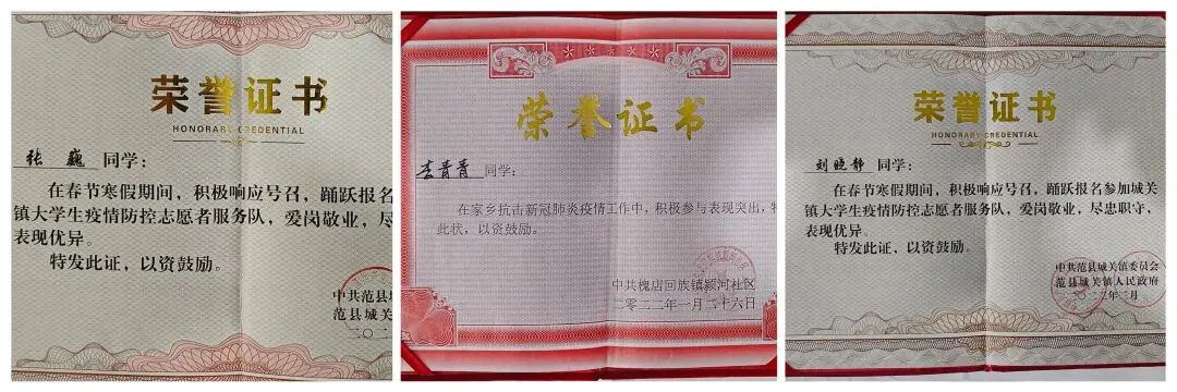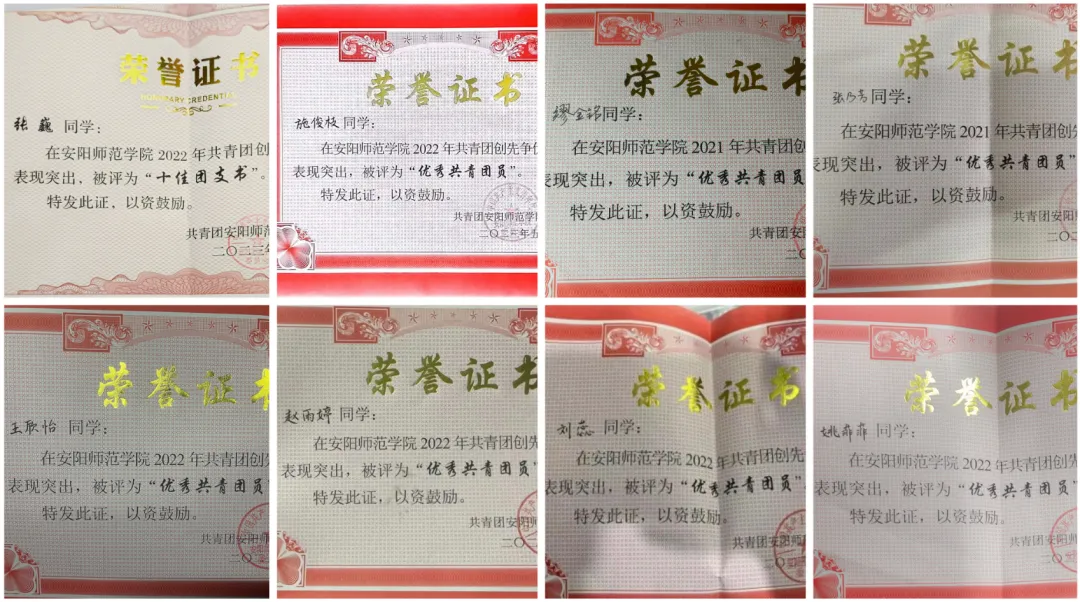 ▲ 图为 十佳团支书及优秀共青团员荣誉证书