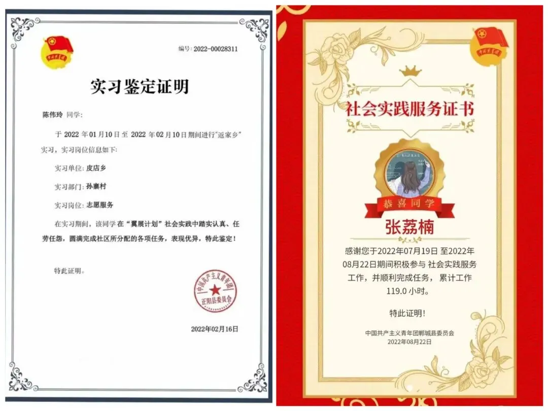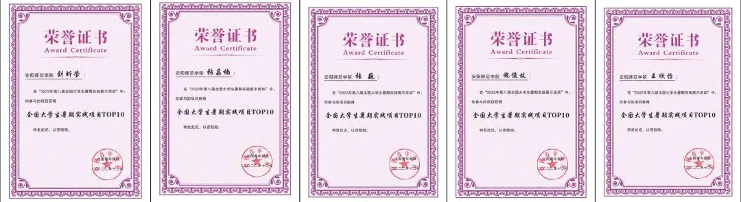 ▲ 图为 全国大学生暑期实践项目TOP10荣誉证书