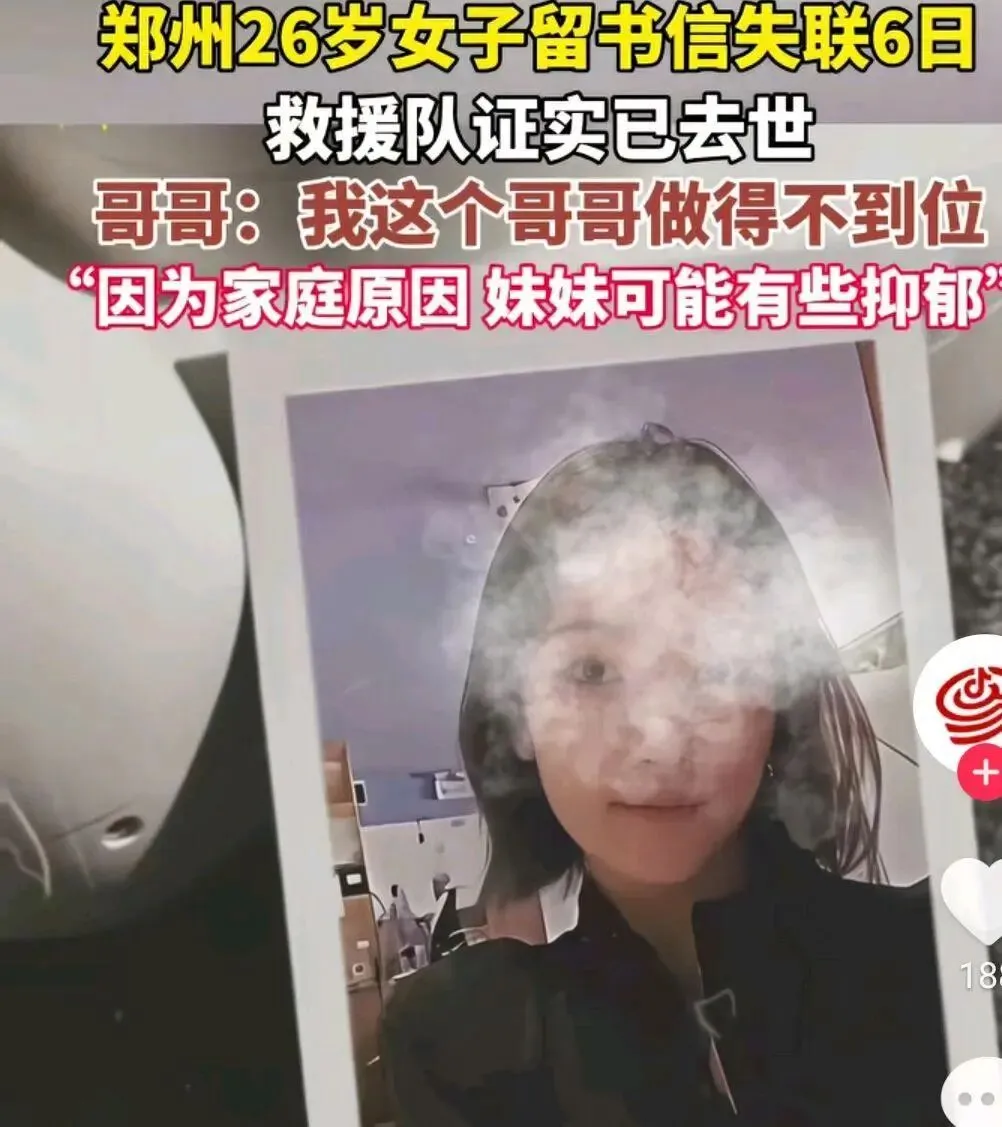 26岁郑州护士李文丽于2026年1月20日晚失联,五天后遗体在贾鲁河被打捞上岸,初步推断因长期抑郁症选择轻生,事件引发对医护人员心理健康及河岸安全隐患的关注。