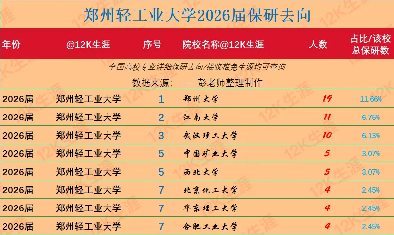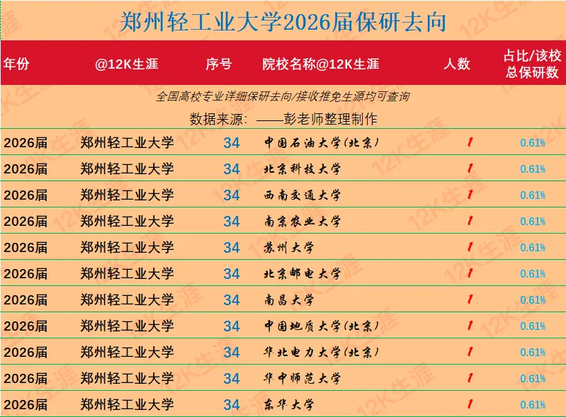 全网首发||郑州轻工业大学2026届保研去向(完整版)