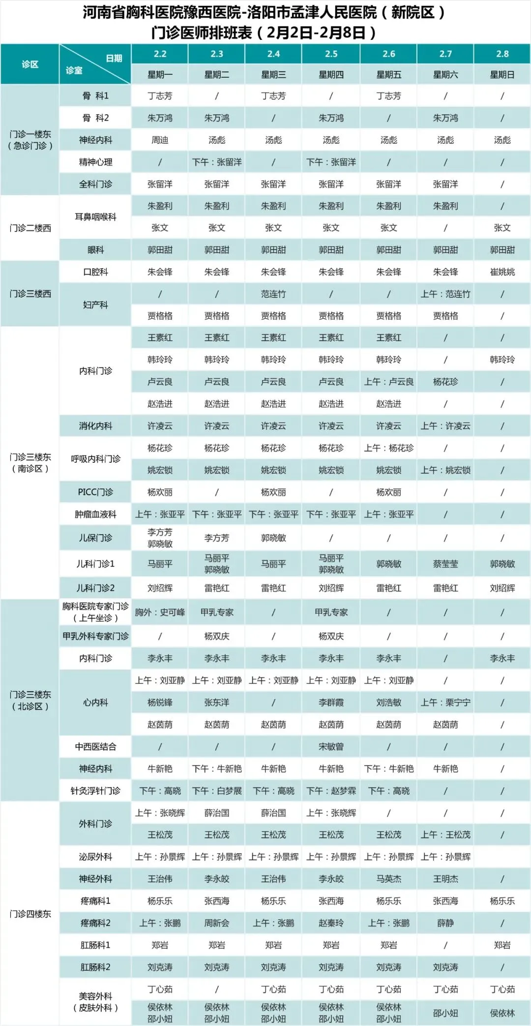 门诊医师或因特殊情况临时调班,您可于就诊当日到“健康洛阳”预约平台查看实时排班。