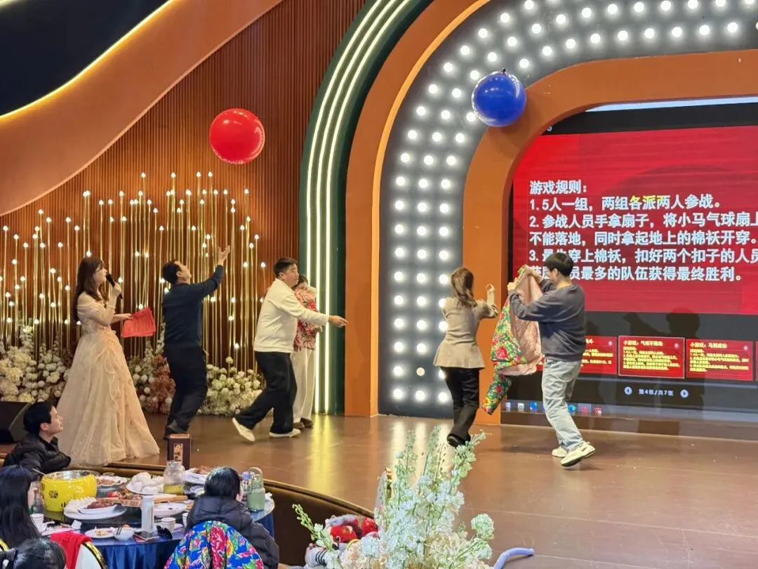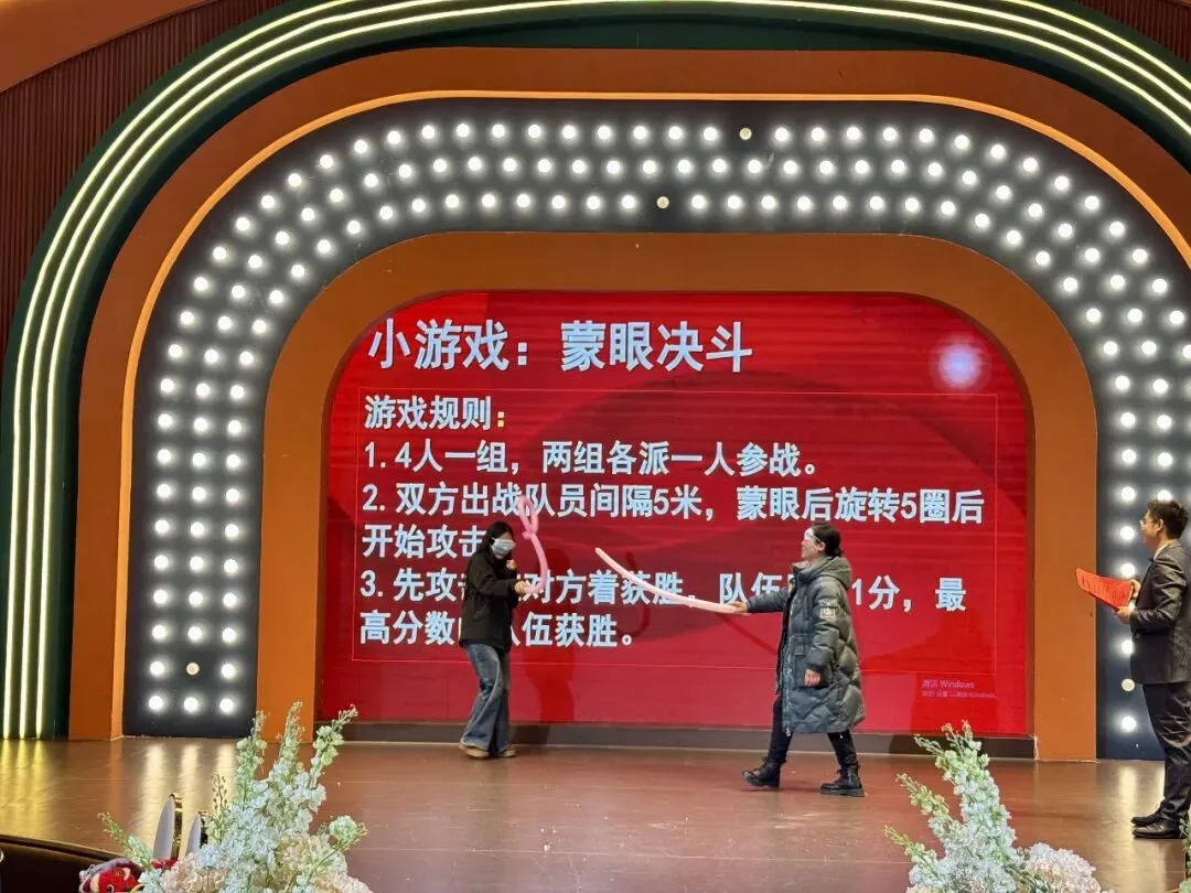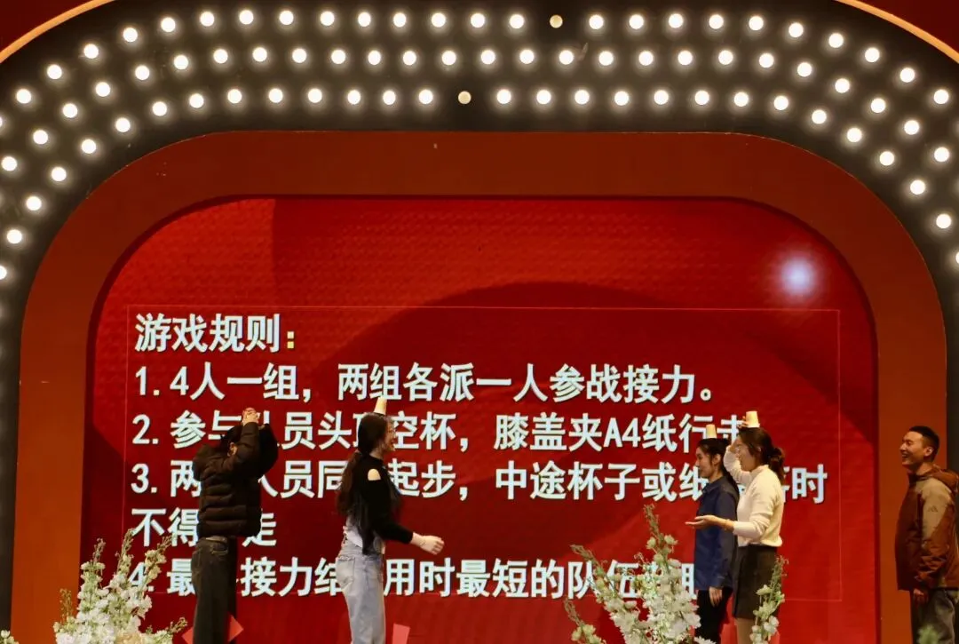 游戏环节中,教职工们踊跃参与、默契配合,“阿凡提赶集”“马到成功” “蒙眼决斗”等互动项目让大家在欢声笑语中增进了情谊、凝聚了力量,一份份精美礼品的送出,让每个人都收获了满满的喜悦与温暖。