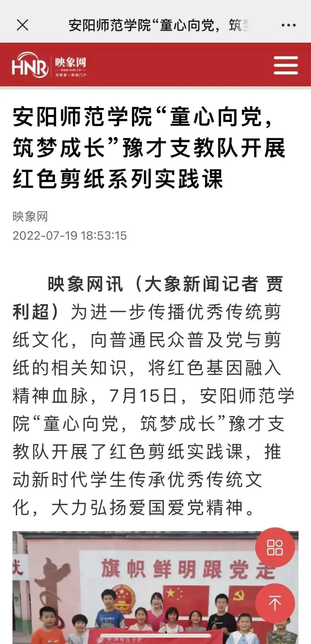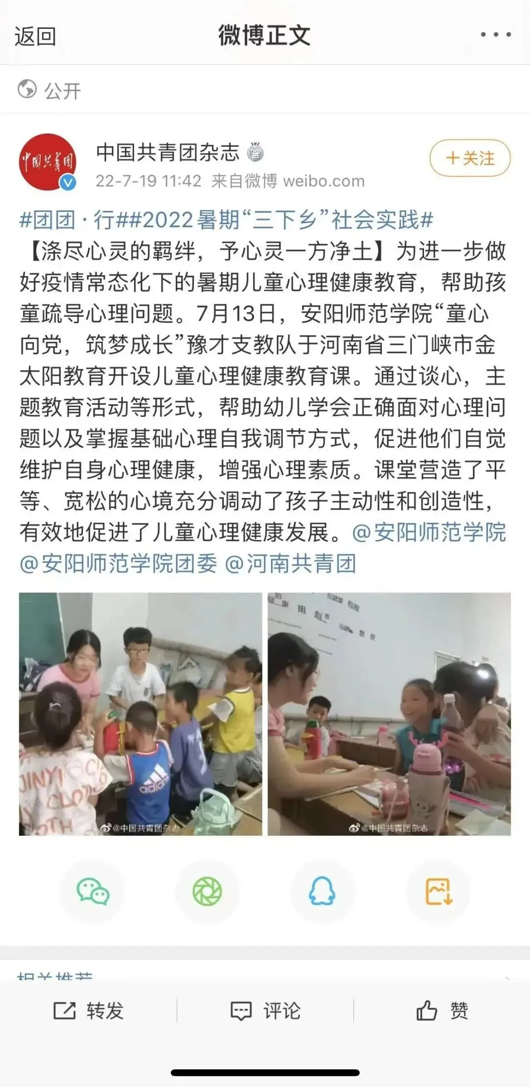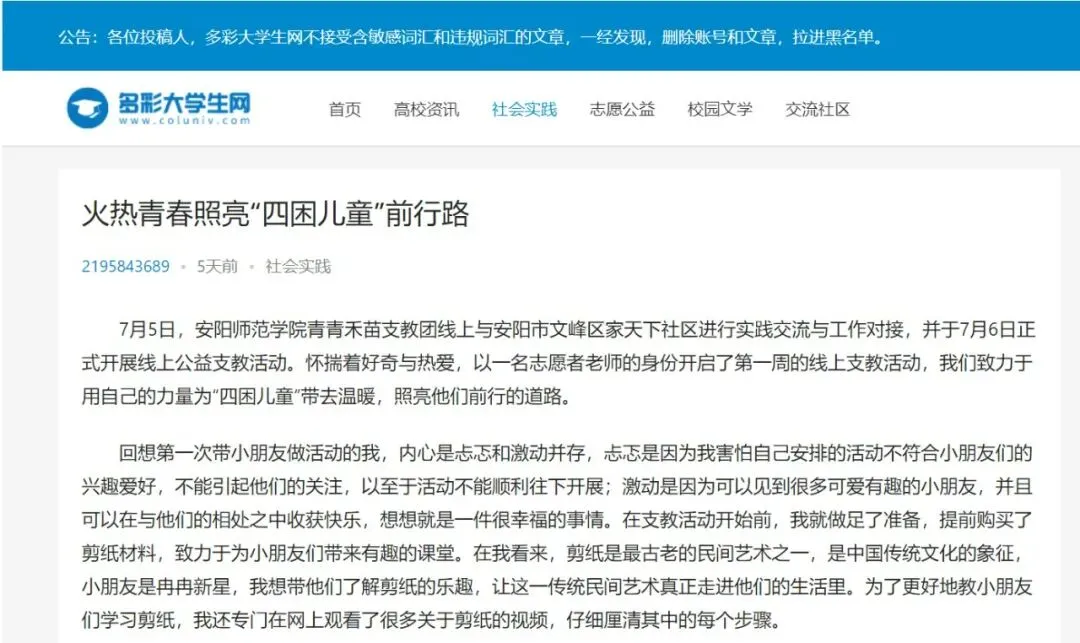 丰富多彩的课程,为孩子们带来丰富的体验,使他们增长很多有用的知识,助力儿童健康茁壮成长,并且呼吁社会上更多的爱心人士关注此类儿童并提供帮助。实践活动被《学习强国》《大学生网报》《多彩大学生网》和推普助力乡村振兴公众号平台报道。