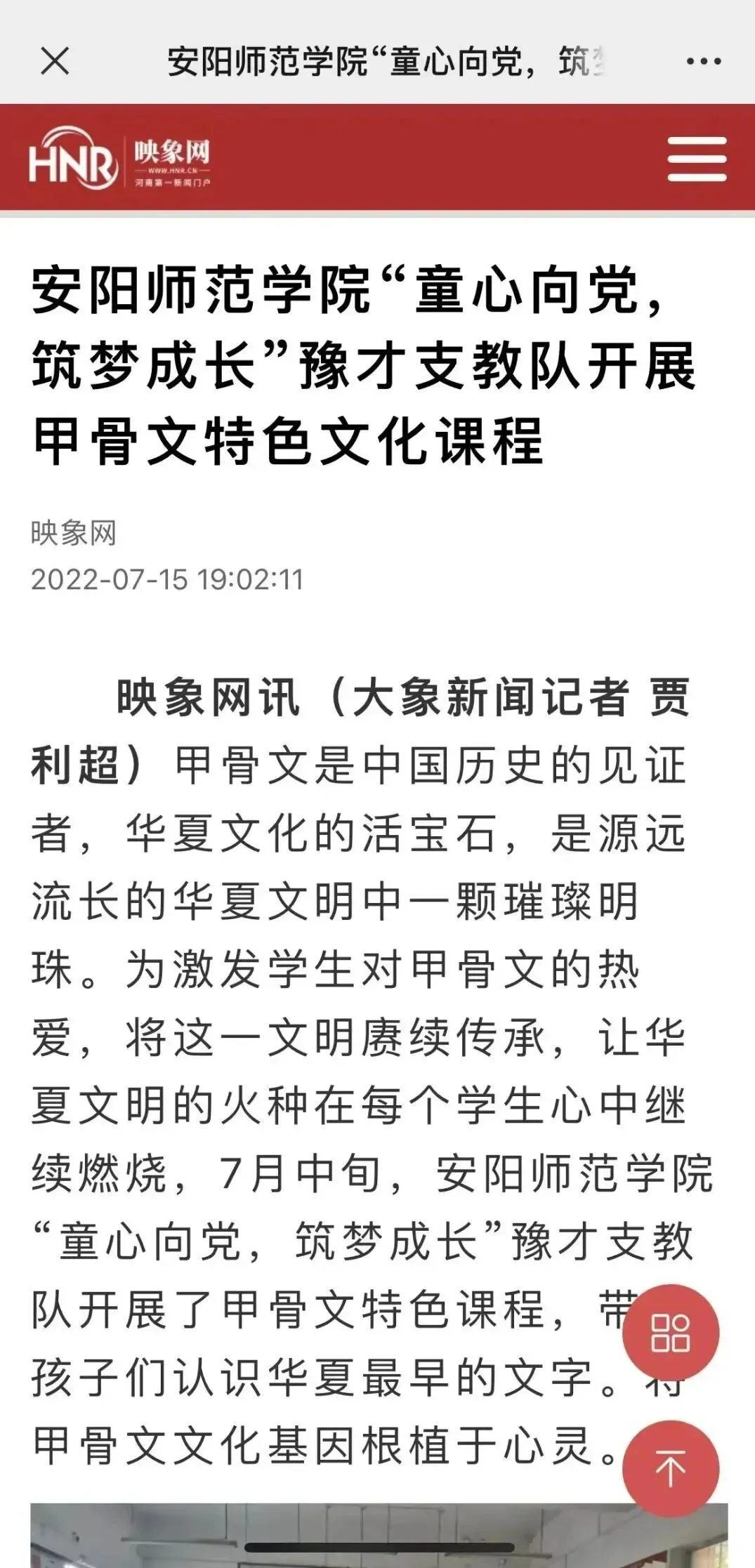 以教育为载体,传承甲骨文化