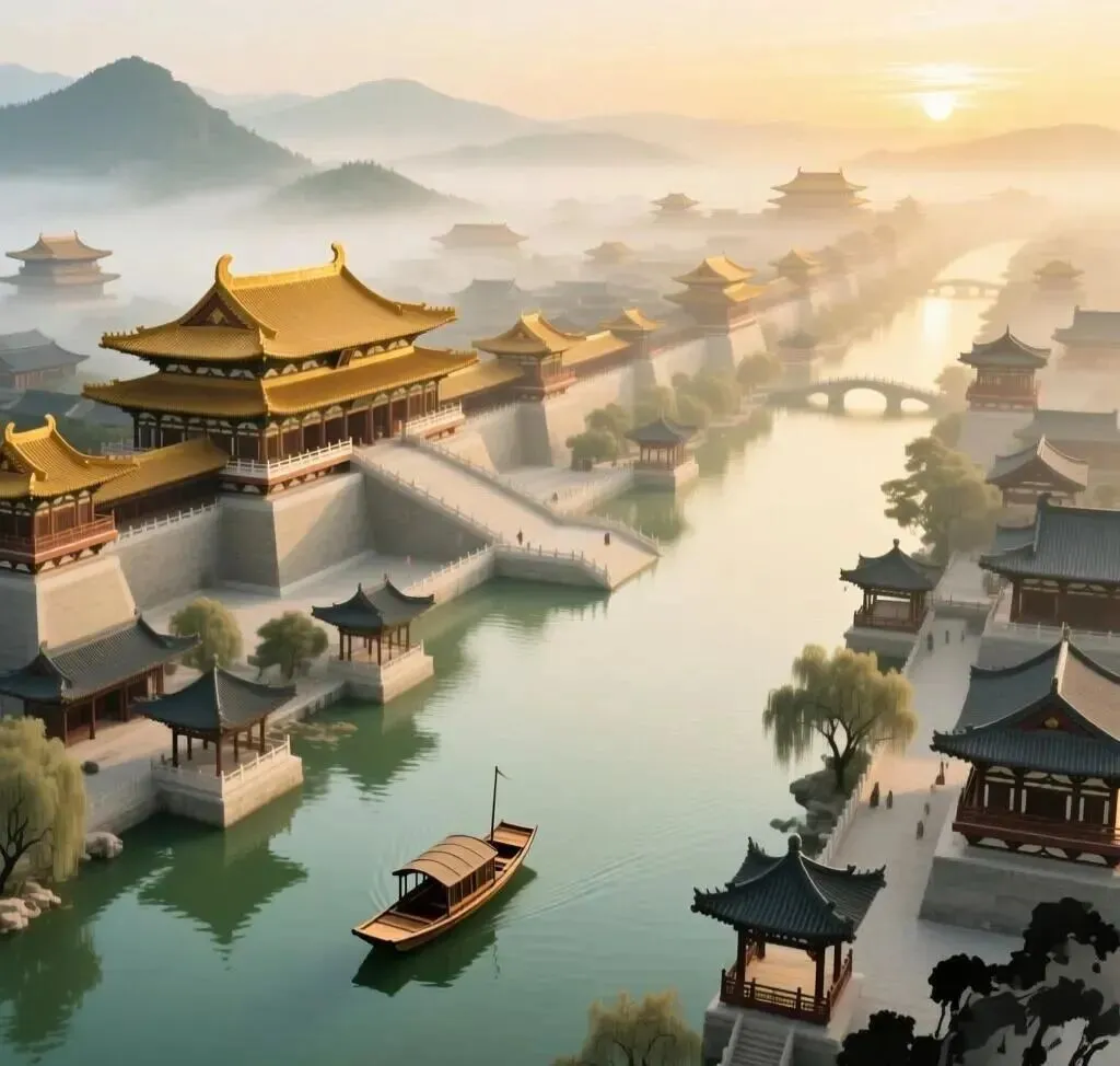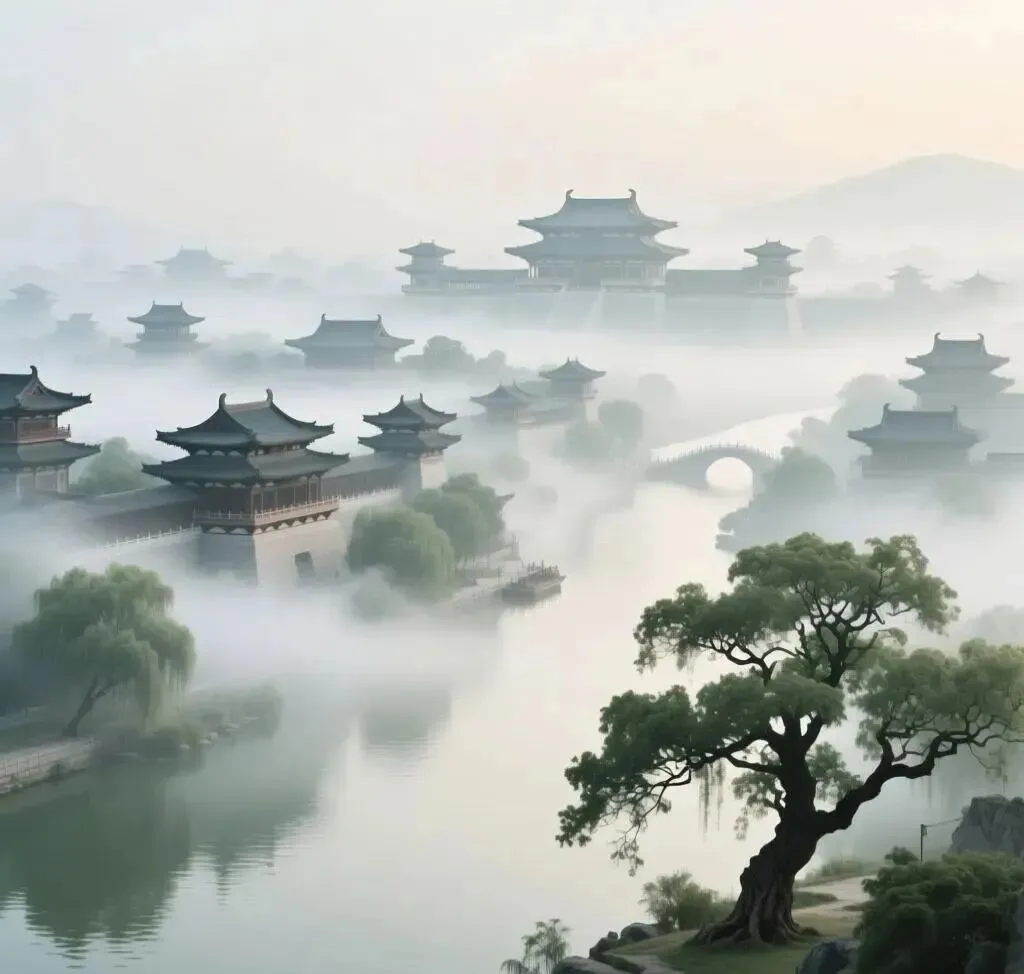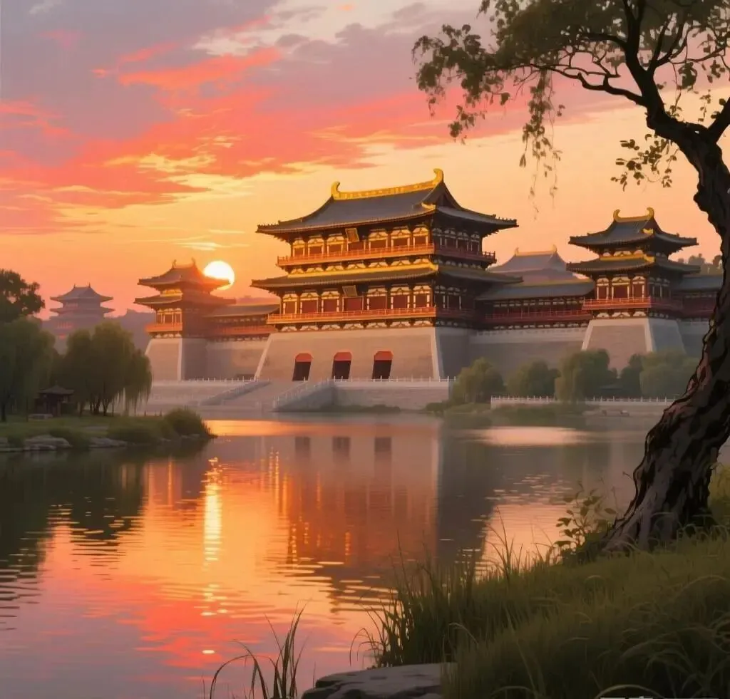 颔联“桥边游女珮环委,波底上阳金碧明”,从洛水写到洛桥和上阳宫。女子在洛桥边游玩,身上的环珮偶尔遗落,上阳宫映入洛水之中,一片金碧辉煌。这两句承接首联“天汉”而来,上阳宫南临洛水,更有支流穿宫而过,“上阳花木不曾秋,洛水穿宫处处流。”(王建《上阳宫》)日华浮动,翠波生光,上阳宫的楼台殿宇映入洛水波底,波光倒影金碧分明。波底倒影尚且金碧辉煌,实景自然更是美轮美奂。从侧面虚写,更见其壮丽辉煌。从波底倒影写楼宇,不是杜牧的原创,岑参《陪群公龙冈寺泛舟》诗有:“汉水天一色,寺楼波底看。”上阳宫在杜牧的时代早已荒废多年,“薄暮毁垣春雨里”(窦庠《陪留守韩仆射巡内至上阳宫感兴二首》)、“两边仗屋半崩摧,夜火入林烧殿柱”(王建《行宫词》),早已没有里“金碧明”。这四句写的都不是现在的景象,而是唐朝盛世时的洛阳胜景。