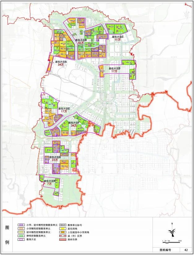 结合航空港区的城市发展规划以及居住用地的分布状况,把航空港区划分为 69 个教育单元。针对每个教育单元内中小学校的规划控制情况,对教育单元提出刚性和弹性控制要求。