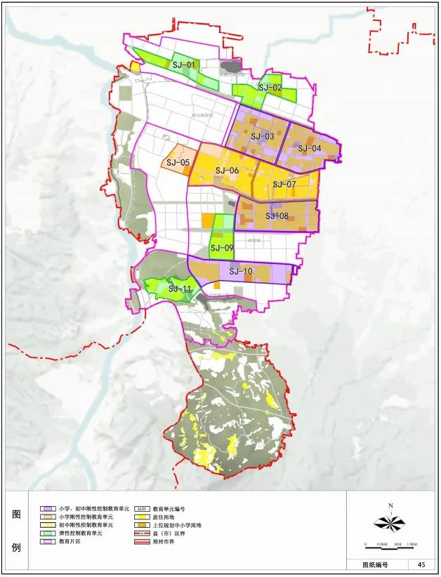 同时,结合新密市城市发展规划以及居住用地分布状况,针对每个教育单元中小学的规划控制情况,对教育单元提出刚性与弹性控制要求。