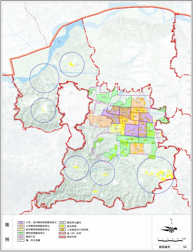 结合登封市城市发展规划以及居住用地分布状况,将登封市划分为 23 个教育单元。针对每个教育单元的中小学校规划控制情况,对教育单元提出刚性、弹性控制要求。