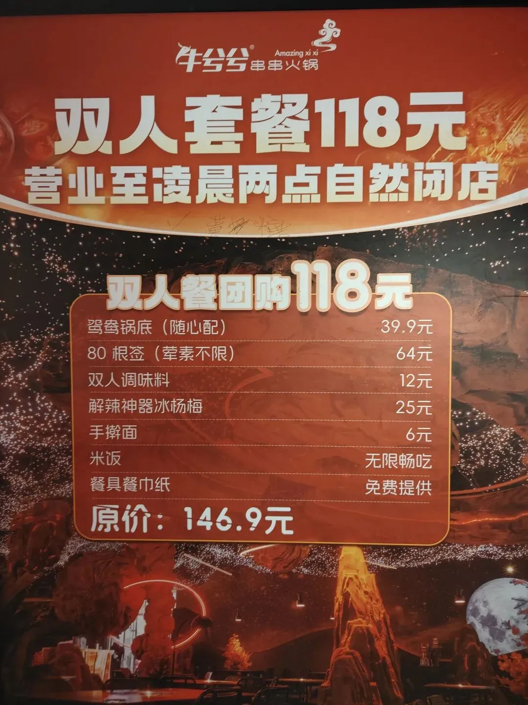 118元套餐包括锅底和80根签