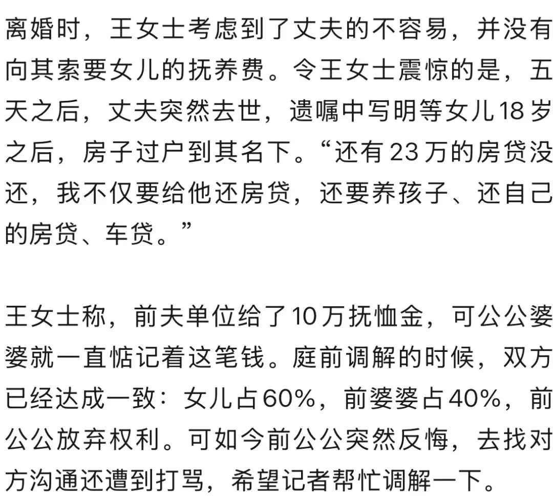 >郑州一女子离婚五天后,前夫突然去世!婆家因10万元抚恤金,将7岁孙女告上法庭