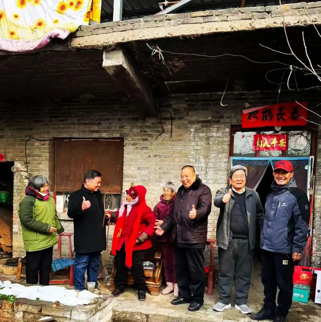 高河村历史悠久,永定河穿境而过,龙山文化遗址与汉代萧何墓等古迹见证着这片土地的人文积淀,而尊老爱幼的传统美德更是在村中代代相传。当日午后,慰问组一行踏着暖阳走进康老太君家中,整洁的庭院与暖意融融的老屋透着岁月静好的温馨。虽已百岁高龄,康老太君依旧精神矍铄、笑容和蔼,见到宗亲们的到来,主动起身相迎,紧握高留斌会长的手不住寒暄,眼中满是欣慰与喜悦。