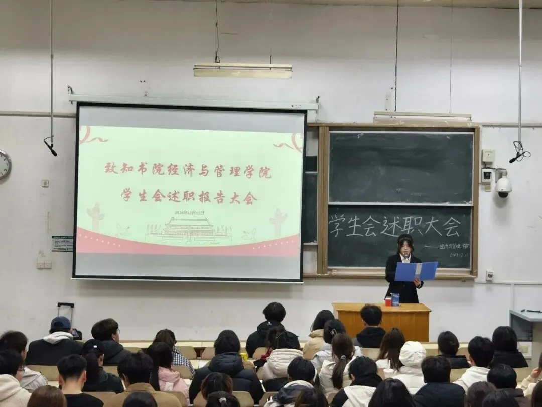12月11日,经济与管理学院学生会在开元校区举办了学生会述职报告大会。出席本次大会的有经济与管理学院第十一届主席团成员、各部门部长及干事。