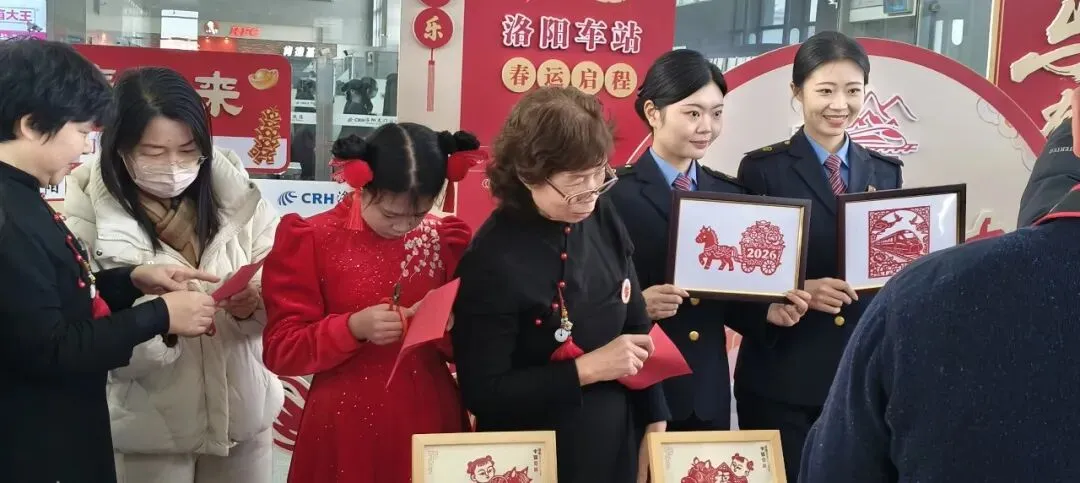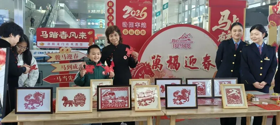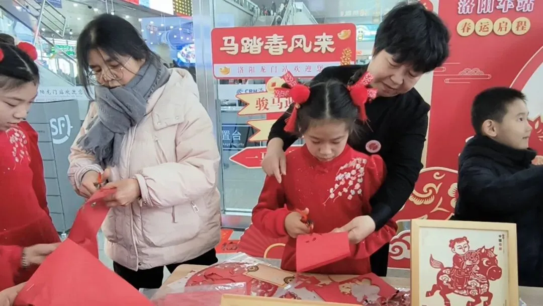 今日,“龙马精神,一跃千里”洛阳龙门高铁站主题活动圆满结束,洛阳市剪纸艺术研究会受邀带来非遗福字剪纸现场体验,让南来北往的旅客在指尖光影中触摸传统文化温度。