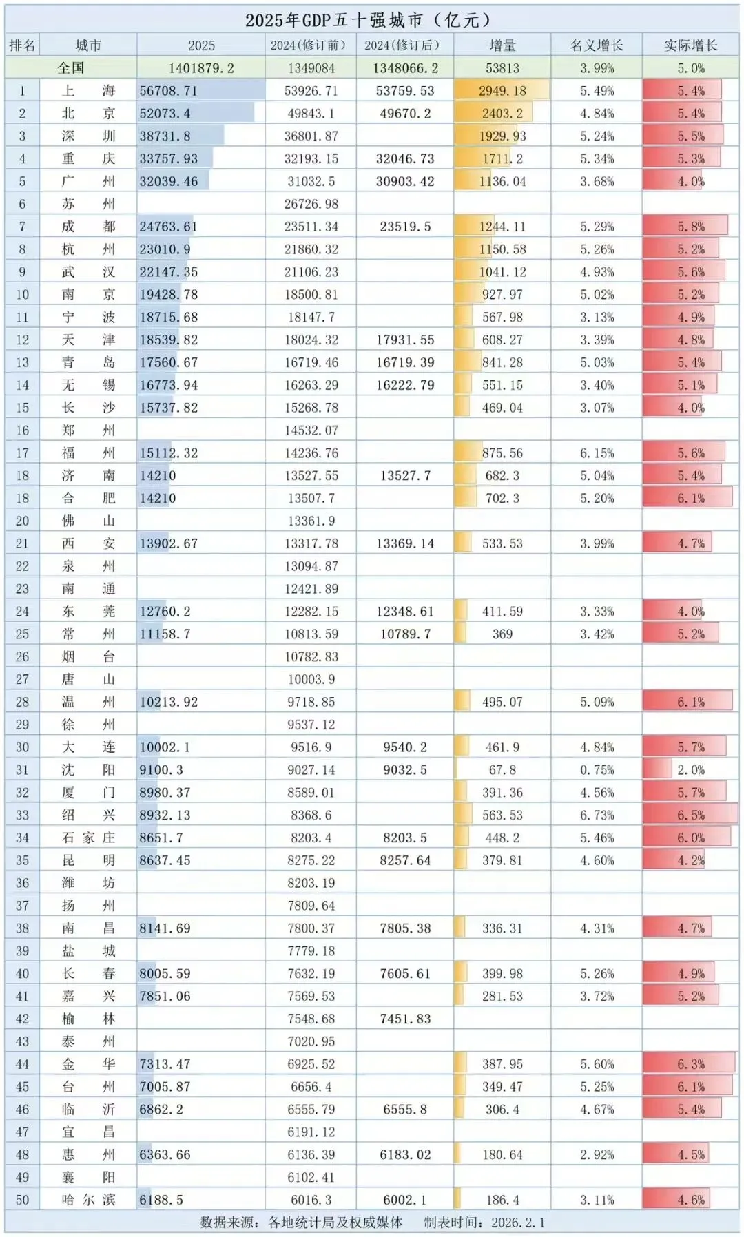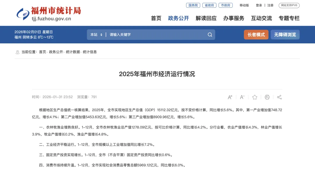 1月31日,福州统计局深夜公布了“2025年福州市GDP运行情况”,确认福州GDP为15112.32亿元,并没有超过郑州,河南网友可以暂时松一口气。