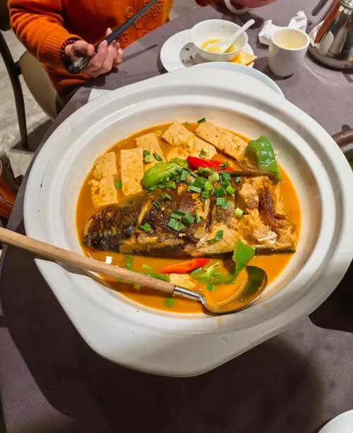 中午,找家老店点一盆“南湾鱼头炖豆腐”。汤色奶白,鱼肉细嫩,豆腐浸得入味,鲜在不言中。再来“固始鹅块”,红亮的汤汁裹着紧实的肉,辣而不燥,配米饭恰到好处。雨天里,一碗信阳炖菜,能把潮气都安顿好。
